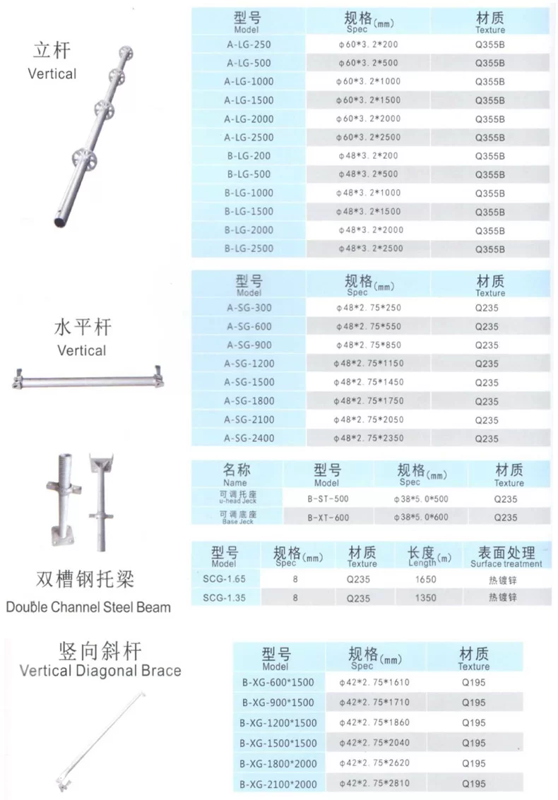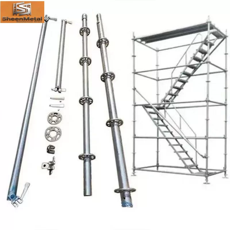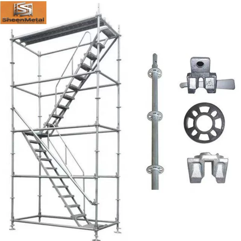 Reka bentuk roset modular membolehkan susun menegak yang cepat dan rentang mendatar, manakala plat asas atau bicu skru memastikan persediaan yang stabil pada permukaan yang tidak rata. Sistem ini boleh disesuaikan dengan mudah kepada geometri kompleks dan serasi dengan aksesori perancah tambahan, menyediakan penyelesaian yang fleksibel untuk projek perindustrian, komersial dan kediaman.