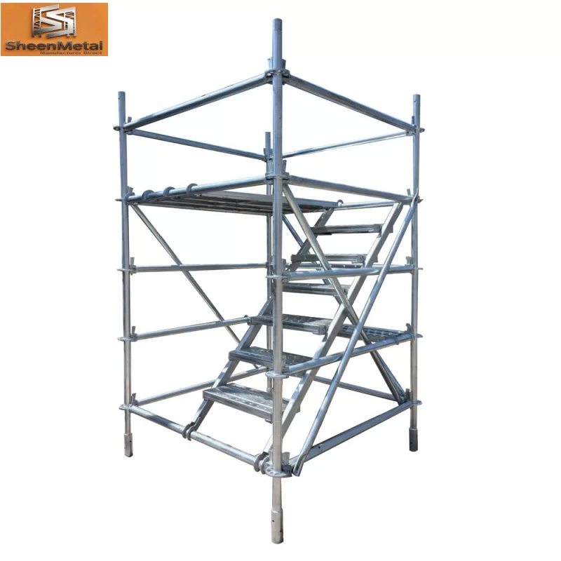 Keselamatan dan kestabilan adalah kekuatan teras. Sistem ini menggunakan komponen keluli berkekuatan tinggi, termasuk piawaian menegak, lejar mendatar dan pendakap pepenjuru, memberikan sokongan yang teguh untuk pekerja, alatan dan bahan. Pagar, papan kaki dan penstabil meningkatkan keselamatan dan memastikan pematuhan dengan piawaian antarabangsa. Reka bentuk roset menjamin bahawa setiap sambungan adalah selamat dan mengagihkan beban secara sama rata merentasi rangka kerja, mengurangkan risiko kegagalan struktur.