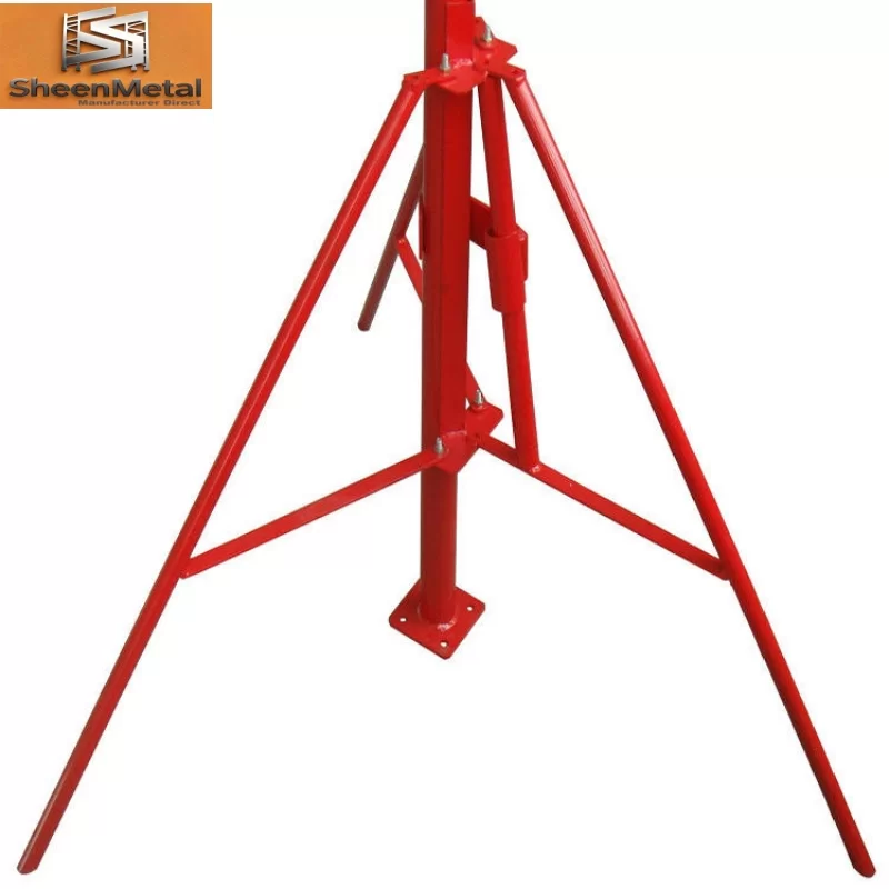 Satu lagi kelebihan utama ialah reka bentuk strukturnya yang teguh. Diperbuat daripada keluli berkualiti tinggi, Tripod menyediakan sokongan sisi yang kuat, membolehkan prop keluli kekal pada kedudukan yang kukuh walaupun pada permukaan yang tidak rata. Struktur berkaki tiga mengagihkan beban secara sama rata, memastikan keseimbangan yang sangat baik dan ketahanan terhadap kesan tidak sengaja di tapak pembinaan yang sibuk.
